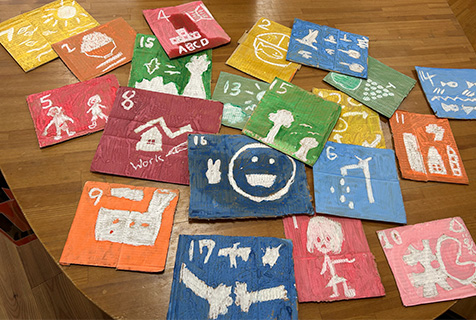 午後の共同作品制作では、参加者を8つのグループに分け、「わたしたちの未来」をテーマとした共同制作に取り組みました。各グループでは活発な意見交換が行われ、言語や文化の違いを超えて子どもたち同士がアイデアを出し合いました。制作が始まると、どのグループも驚くほどのスピードで作品を完成させ、1枚のキャンバスに全員で協力して絵を描くという体験は、参加した子どもたちにとって非常に貴重で意義深いものとなりました。