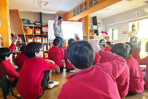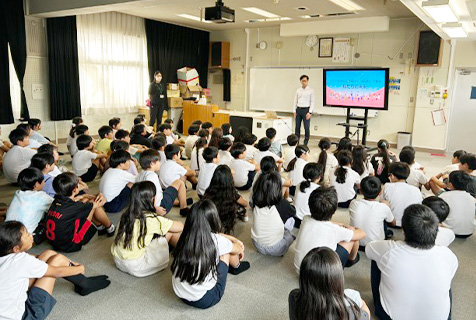今回は、1~3年生と4~6年生の2回に分け、「世界に視野を広げ、SDGsを考える学習」の一環として、出前授業を実施させていただきました。神戸バイリンガルスクールさんでは、国際理解教育に加え、SDGsの学習も積極的に取り入れられています。