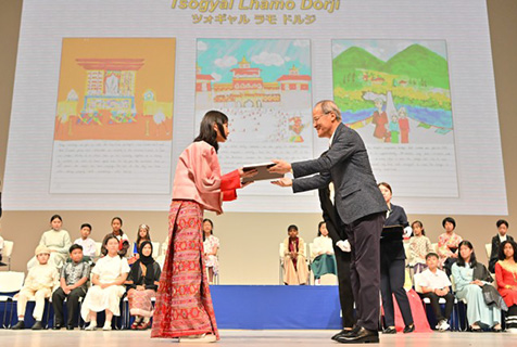 表彰式では、ステージ後方の大型スクリーンに受賞者の素晴らしい作品が次々と投影され、会場にお越しいただいた皆様の心を魅了いたしました。子どもたちの豊かな感性と創造力が表現された作品群は、国際的な文化交流の意義と価値を参加者全員が実感できる機会となりました。
