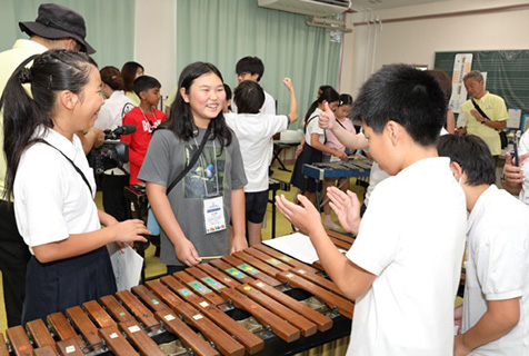 2日目は大阪市立城東小学校を会場として、日本文化体験プログラムと共同作品制作を実施いたしました。午前中の文化体験プログラムでは、城東小学校の児童の皆さんが心を込めて企画してくださった日本文化体験活動に参加いたしました。