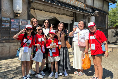 続いて東映太秦映画村を訪問し、日本の映画文化とエンターテインメントの世界を体験していただきました。特に時代衣装体験や忍者体験では、子どもたちだけでなく保護者の方々にも積極的にご参加いただき、世代を超えた国際交流が深まる様子を拝見することができました。