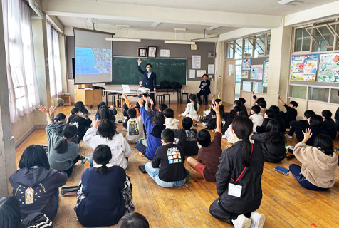 2025年10月3日、日野町立桜谷小学校にて、講師に日本ユネスコ協会連盟の鴨志田さんを迎え、1~3年生と4~6年生を対象に出前授業を実施しました。