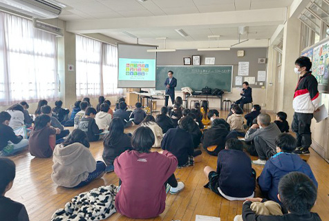 今回は、1~3年生と4~6年生の2回に分け、「SDGs入門学習」の一環として、出前授業を実施させていただきました。