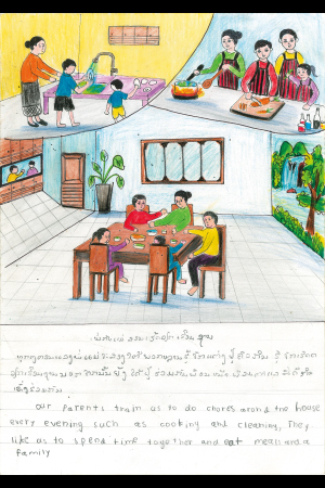 毎晩、両親は、ぼくたちに料理と家事のやり方を教えてくれます。さらに、ぼくたちは家にいる時、お互い助け合って料理をすることもあります。