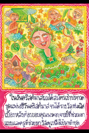 クリスマスの日に、ぼくはクリスマス仮装コンテストに参加しました。そして一等賞をとりました。この成功には、裏で支えてくれた人たちがいます。ぼくは、衣装をデザインしてくれたお坊さんと、衣装を作るのに使うリサイクル素材を提供してくれた先生に、感謝しなければなりません。