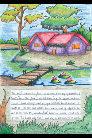 ぼくの一番好きな場所は、おばあちゃんの家です。学校に行く前と後に必ず行きます。おばあちゃんの家は、ぼくを安心させ、温かい気持ちにしてくれるので、とても好きです。いつもコーヒーの香りがします。おばあちゃんの家にはたくさんの人がきています。古い家です。ぼくはおばあちゃんの家が大好きです。