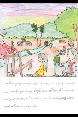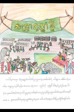 この前の休みはクメール正月(カンボジアの旧正月)で、家族で、両親の故郷の村にある仏塔に行きました。そこでは、人びとがサンクランタ(カンボジアの伝統的な正月の祝い)や、民族舞踊を踊ったり、歌を歌ったり、伝統的な遊びをしたりしていました。私はつぼ割り遊びに参加し、弟は綱引きをして遊びました。私も家族もとても幸せでした。カンボジア国民として、私たちは自分たちの文化と文明を大切に受けつがなければなりません。