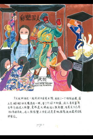 今日、私は友だちと中国美術館へ行きました。そこで企画展を見ました。まるで生きているようでした。紹介文を読んで、私はやっと気づきました。これらの生命力を感じさせるカラフルな人形は、180年の歴史をほこる天津の有名な「ニレンザン(土を材料に作られる人形)」でした。「ニレンザン工房」は中国で一番最初に無形文化遺産として登録されたものです。
