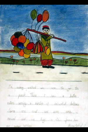 週末になると、よく公園に行きます。そこで私は様ざまな色の風船を持った風船売りを見かけました。だ円形や丸など、いろいろな形の風船がありました。私は休日のたびに風船を買います。