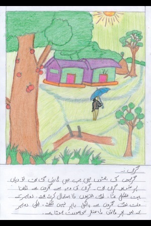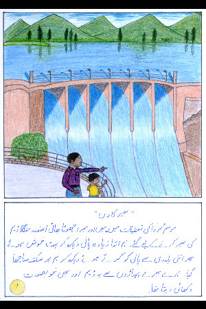夏休みに、ぼくと弟のアスフェンはマングラダム(パキスタンの北部にあるダム)へ行きました。ぼくたちはたくさんの水を見てとてもおもしろかったです。高い所から水が落ちるのを見て感動しました。ダムを囲む山々の緑が、ダムの美しさをさらに引きたてていました。