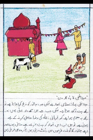 イードはイスラム教徒の祭りです。イードでは動物をささげなければならないので、私はとても辛かったです。しかし後で、それはアラーの神のご加護を頂くためであることを知りました。今では私はこの祭りを心から楽しんでいます。私たちのささげた肉を貧しい人びとの幸せのために分けてあげています。