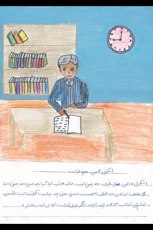 私たちの学校には図書館があります。色いろな本を借りて読み、世界の情報を得ることができます。この他にも、たくさんの種類の本があり、英語やウルドゥ語で書かれたものがあります。