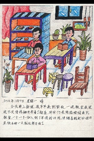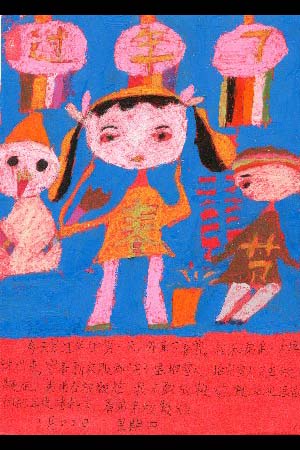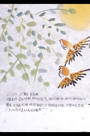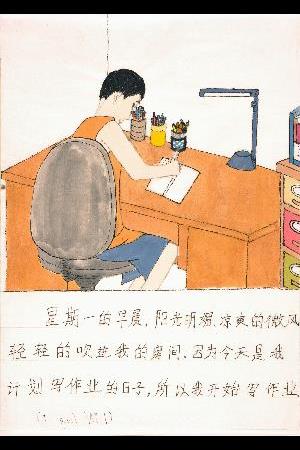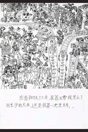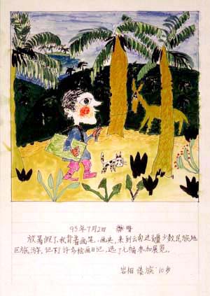 夏休みに雲南省に行きました。絵の具と筆を背負って行きました。私は絵日記を描いて、展覧会のために7枚選びました。