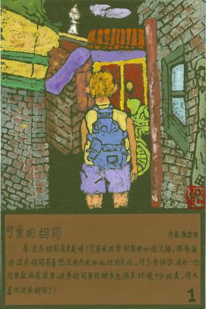 見てください。フートンは、何てすてきなんでしょう!これは、学校から家へ必ず通る道です。お父さんによると、このフートンは、長い歴史とすばらしい文化を持っているそうです。クラスメートのひとりもこのフートンに住んでいます。たくさんの木もあって、美しいかん境です。このフートンが大好きです。