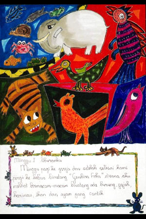 日曜の朝、教会へ行きました。その後、グムビラロカ動物公園へ行きました。そこで鳥、象、トラ、魚、きれいなニワトリ等の様ざまな動物を見ました。